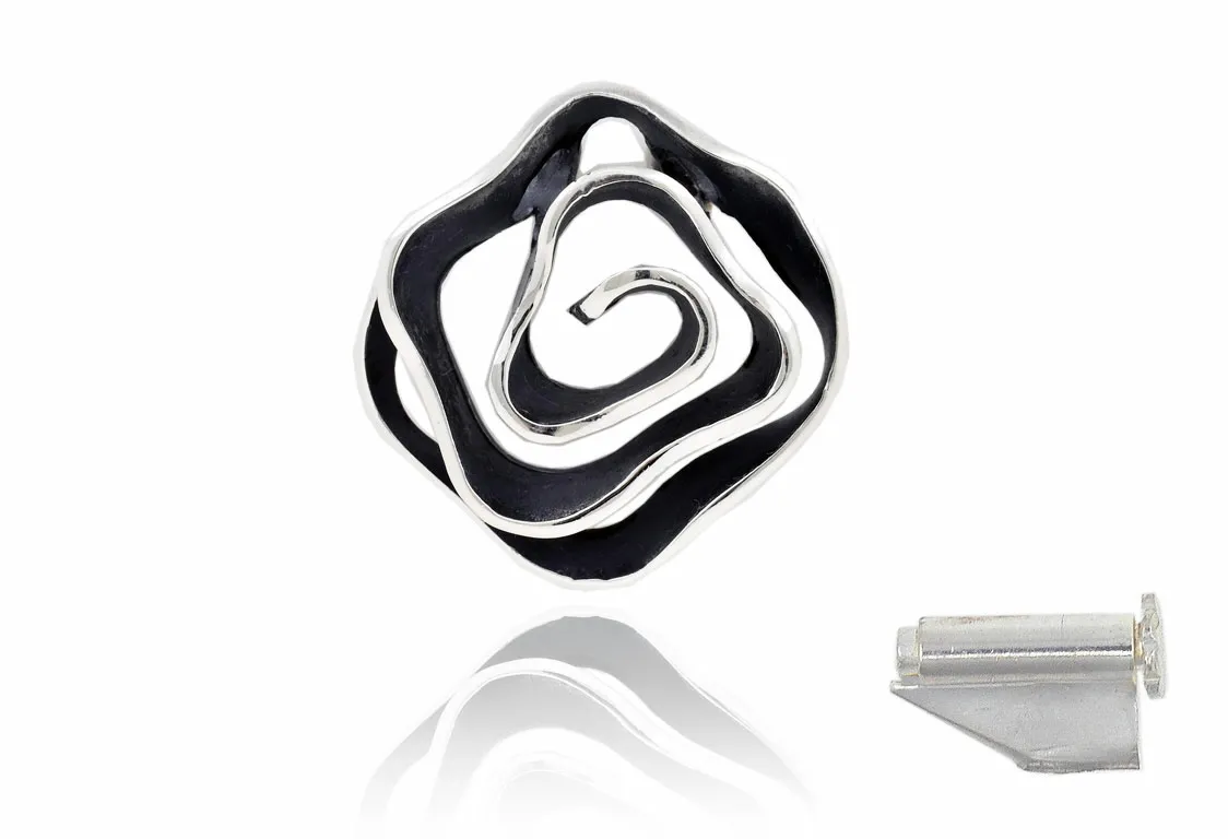 in oxidized and polished finish, 3×3 cms with a safety closure